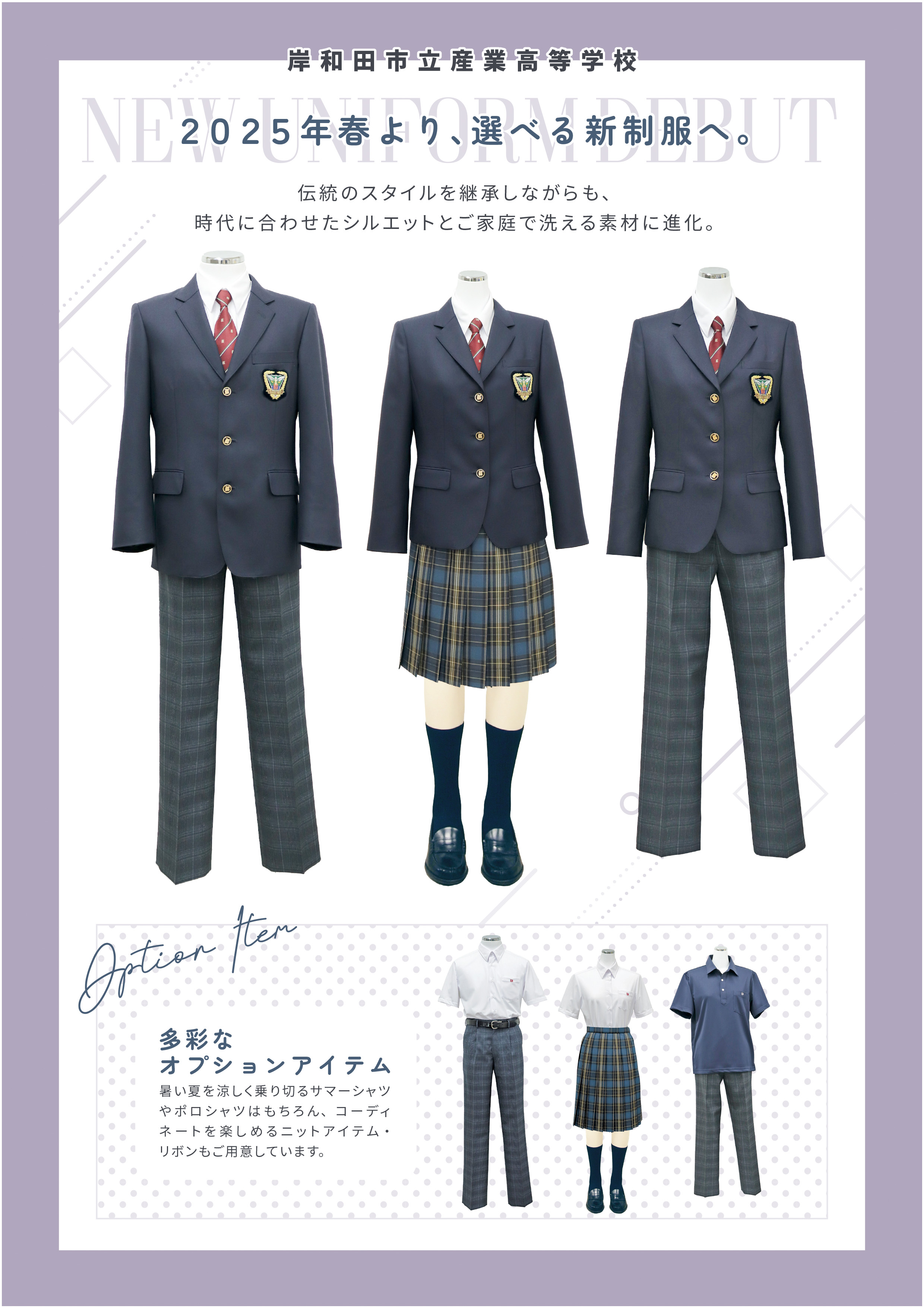 | 昭和23年 | 学制改革により岸和田市立産業高等学校が設立される。普通、商業、工業の3科を設置。のち商業、紡織の2科に再編。 |