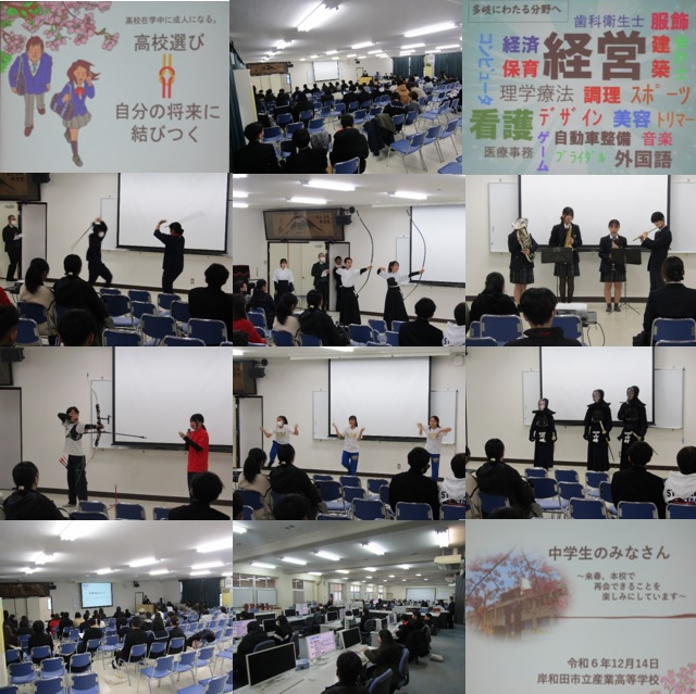 12月14日(土)、本校を会場とする学校説明会を行いました。寒い一日でしたが、午前の部、午後の部共にたくさんの中学生及び保護者の皆様にご来校いただき有難うございました。産業高校を知ってもらうための全体的な説明会でしたが、志望校選択の一助となることを願っています。今回の説明ではわからなかったことや個別に聞きたいことがある方は、次回1月18日(土)【個別相談会】…(今年度最終)に是非お越しください。HPより申込受付中です。