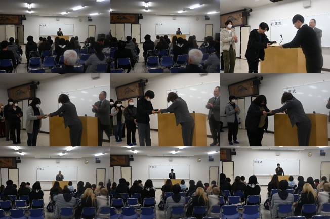 伝達表彰では全商英検1級を取得した生徒をはじめ、2学期に取得した検定試験の合格証書を渡し、秋季発表大会【絵画の部】奨励賞や、人権作文、校内ワープロコンクール等の表彰も行いました。全国的にインフルエンザが大流行しています。感染予防を徹底し、怪我無く事故無く風邪ひかず、元気に過ごしてください。3学期の準備もお忘れなく!