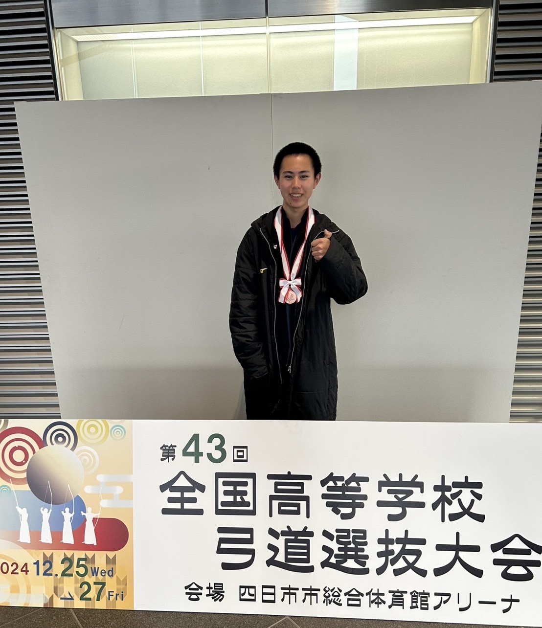 12月25日(水)標記全国大会が開催され、本校弓道部、玉田さんが男子個人で6位に入賞しました。全国6位です!!