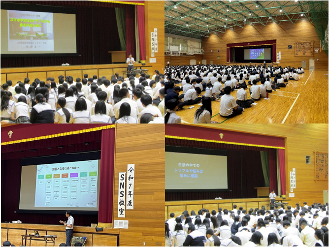 8月29日(金)3限目~ 1年生の『制服着こなし講座』のあと、全学年対象で『SNS教室』を実施しました。