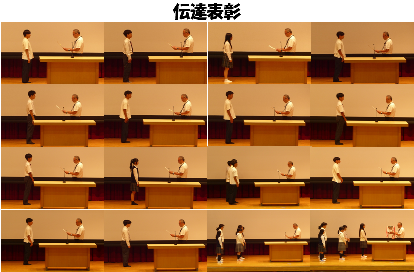 本日、全校朝礼を実施し各部活動の伝達表彰を行いました。