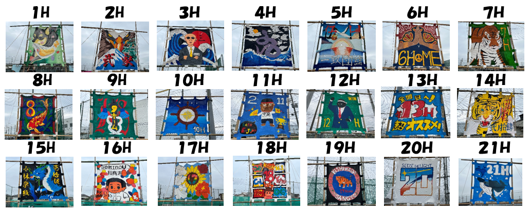 今年も各ホームで旗係を中心に応援旗を作成し、当日はグラウンドを囲むように各ホームの応援席に立ち並びました。