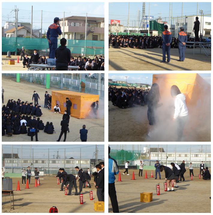 今年度2回目となる避難訓練を実施しました。『静粛敏速』な避難のあと、昨年度と同様に岸和田市消防本部より2名の隊員の方にお越しいただき、