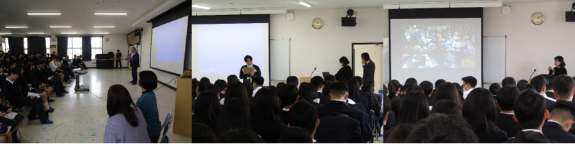 昨日の離着任式及び始業式の様子です。離任式には菅原先生にご出席いただき、生徒の皆さんと先生方に向けてご挨拶を頂戴しました。