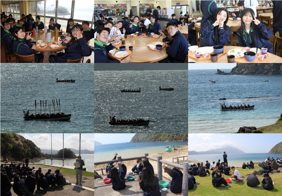 昼食の後、午前と午後の班を入れ替えて、それぞれ各研修を行いました。海上での「カッター」研修では体力的にも本当に大変だと思いますが、
