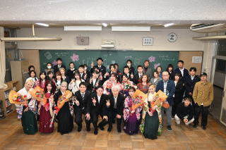 2/27(金)午後6時より、第78回卒業証書授与式を挙行しました。当日は、岸和田市長・佐野英利様、岸和田市教育委員会教育長・大下達哉様をはじめ、多数のご来賓のみなさま、そして保護者のみなさまご出席のもと、卒業生17名の門出をお祝いいただきました。