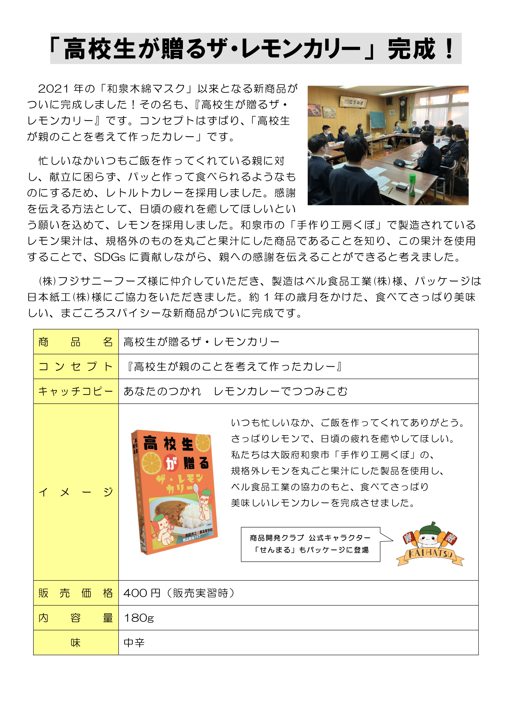 「高校生が贈る ザ・レモンカリー」完成!
